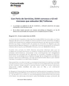 DIAN realizará Feria de Servicios para 43,000 morosos con deudas por 6,7 billones de pesos